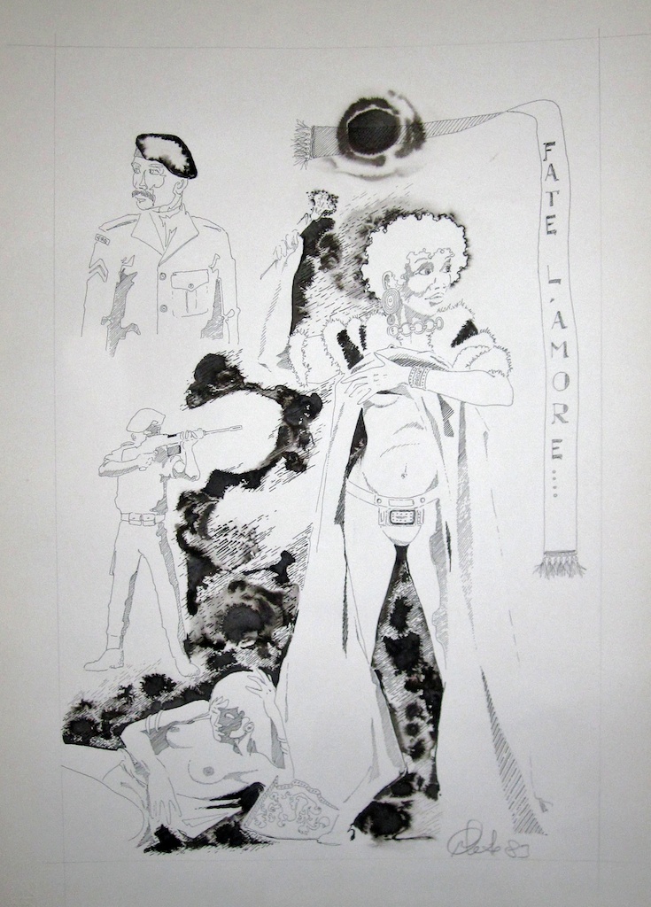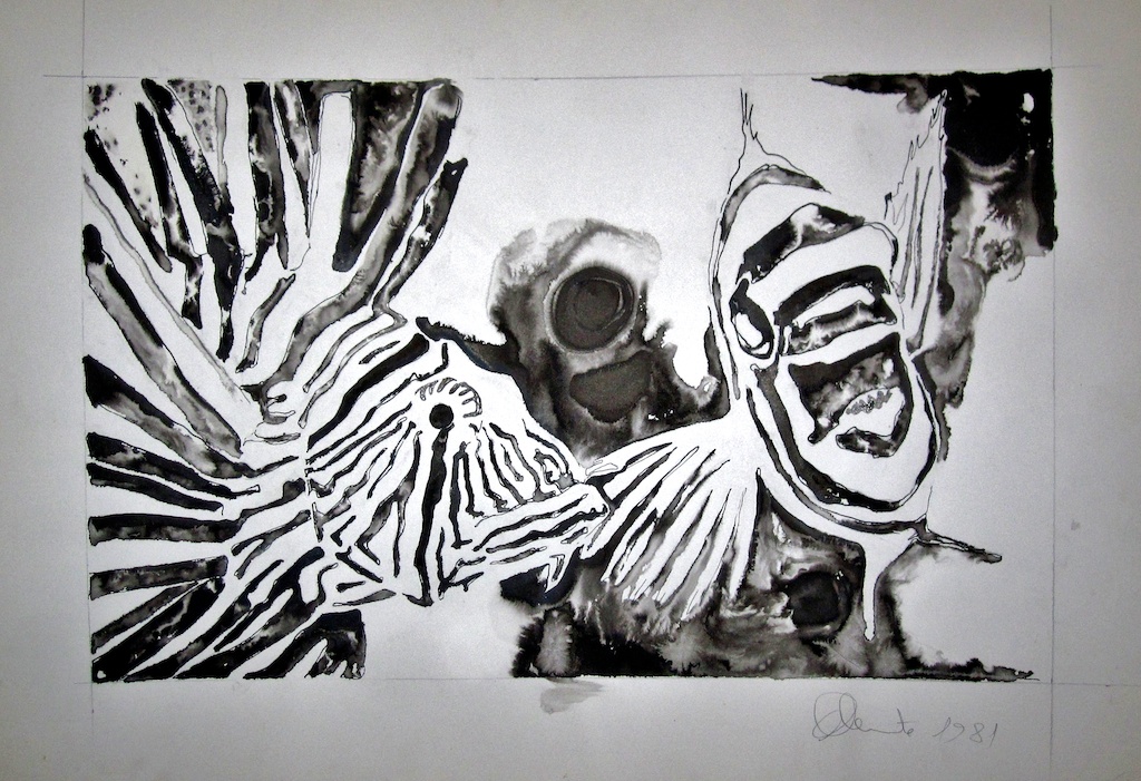 Un abbozzo a matita e poi il puro piacere del disegno a inchiostro senza un preciso significato. Magari, mentre disegnavo, c'era un' intenzione che ho dimenticato. So per certo, però, che non c'era un intento solamente decorativo: il disegno ad inchiostro è una sorta di scrittura spesso, ahimè, indecifrabile anche per lo scrittore.